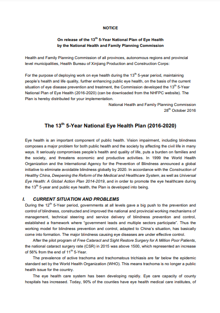 But the Chinese government has the resolve -- and a five-year plan -- to eradicate poor vision and preventable blindness by delivering "universal medical eye care for all."