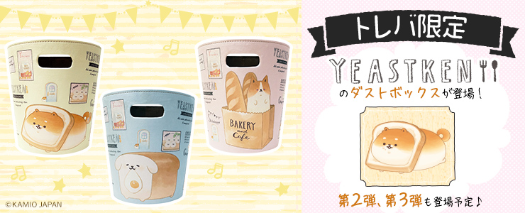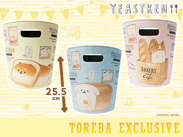 パンの生地を寝かせていたら、いつの間にか現れたパンのわんこ、「いーすとけん。」より、しばこっぺ、ゴールデントースト、コゲットがプリントされた可愛らしいいダストボックス(約25.5cm)が登場!