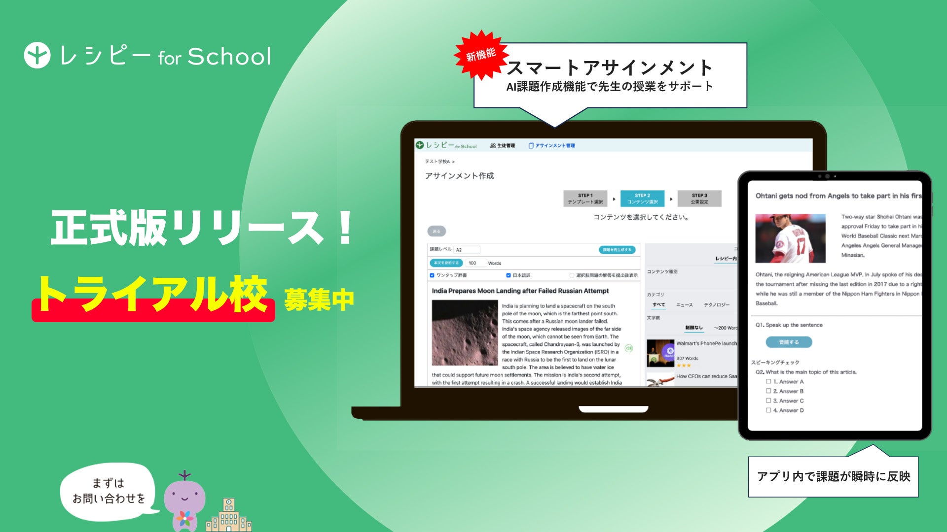 ・AI課題作成機能で先生の授業をサポートする「スマートアサイメント」機能搭載
